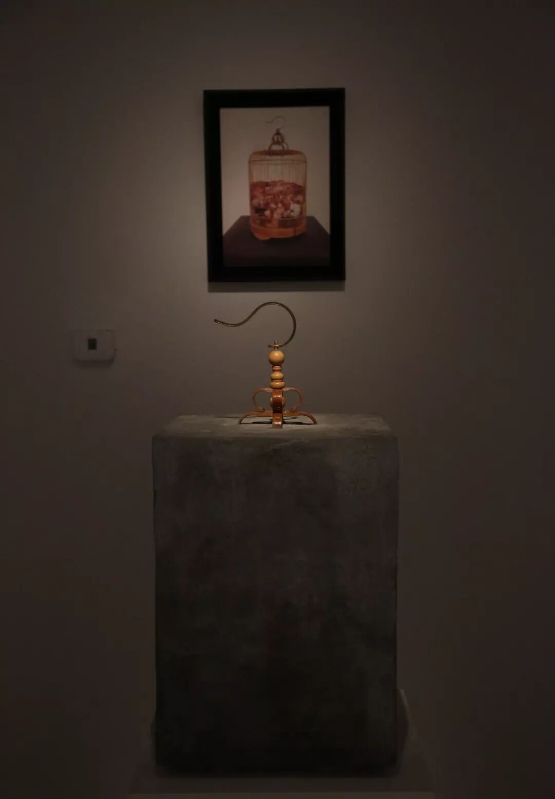 ▲ 洛鹏,时间的葬礼,水泥、鸟笼、照片,尺寸可变,2016