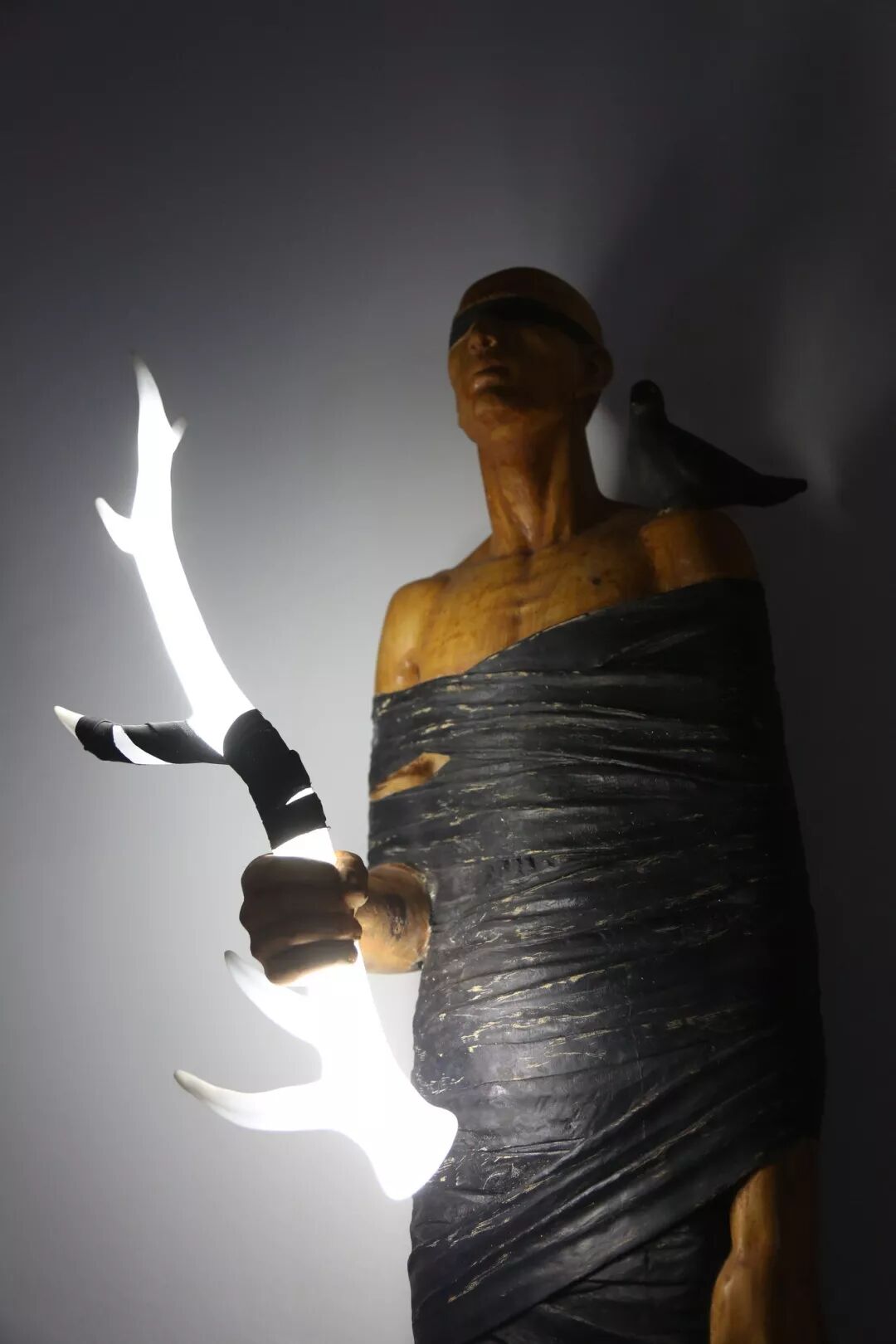 ▲ 王卓,抚·梦,柏木,布,灯管,204 x 94 x 174cm,2018