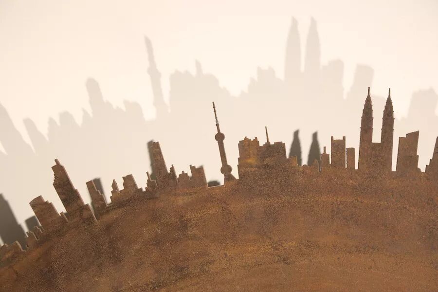 田龙玉,2007年毕业于天津美术学院。他的《天际》系列作品关注当今人们所处的城市环境,在经济迅猛发展的今天,城市的发展成为富有旋律的坚硬的存在,一个个鲜明的建筑像是在地平线上长出的锯齿,划破了天空。不断生长、加速旋转的锯齿,环绕着我们,不厌其烦地发出声响:呲呲呲……呲呲呲呲呲……