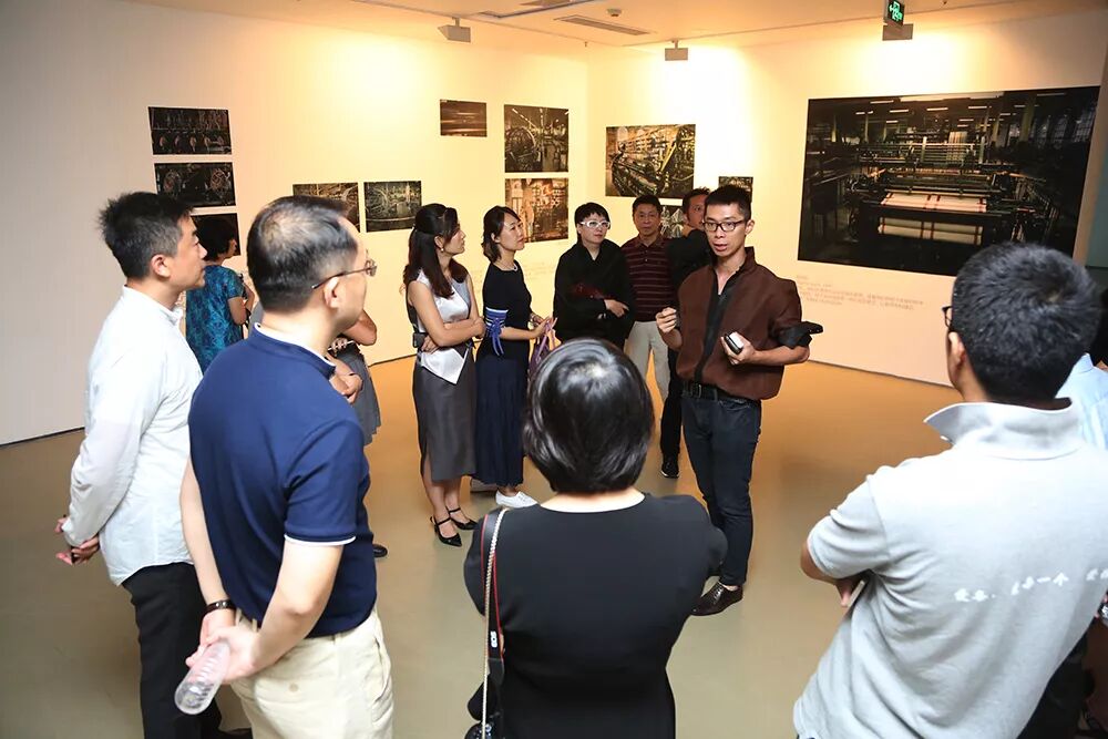 嘉宾及观众聚集在艺术家江凯群周围,聆听艺术家本人的讲解。